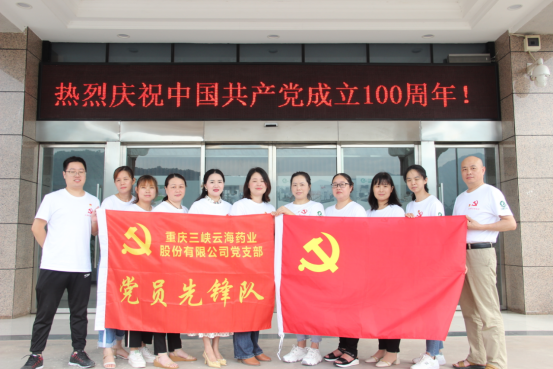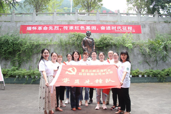 為慶祝中國共產黨成立100年,雲海藥業黨支部組織雲海藥業黨員開展內容豐富、形式多樣的係列活動,共話初心使命,共抒愛黨之情,慶祝中國共產黨成立100周年。6月30日一早,雲海藥業黨員在公司門口集合,與黨旗和先鋒隊旗幟合影之後來到雲陽縣烈士陵園緬懷先烈。