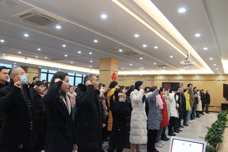 會議主要分為三個議程,首先是全體參會人員合唱廠歌——雲yun海hai情qing,優you美mei的de歌ge聲sheng在zai雲yun海hai大da會hui議yi室shi緩huan緩huan回hui蕩dang,感gan謝xie三san峽xia雲yun海hai藥yao業ye為wei全quan體ti員yuan工gong提ti供gong了le施shi展zhan才cai華hua的de平ping台tai,讓rang大da家jia可ke以yi在zai各ge自zi擅shan長chang的de崗gang位wei上shang熠yi熠yi生sheng輝hui。緊jin接jie著zhe雲yun海hai藥yao業ye公gong司si董dong事shi長chang鄒zou隆long瓊qiong為wei大da家jia送song上shang新xin年nian開kai工gong祝zhu福fu,並bing再zai次ci強qiang調tiao了le2022年工作目標和重點工作。鄒總說:開局即起跑,起跑即衝刺。要求全體員工牢固樹立“今天再晚都是早,明天再早都是晚”的時不我待的工作作風。大會的第三項議程是舉行宣誓儀式,在整齊的隊伍中,大家鏗鏘有力的宣誓語充滿激情和熱情。