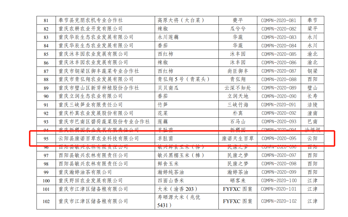 2020nianduzhongqingmingpainongchanpinpingxuanhuodong,shiquanmianxitongdihuiguwoshinongyeqiyefazhanzhuangkuang,peiyuyuzhuangdamingpaichanpin,tuidongnongyeqiyegaozhiliangfazhandezhongyaojucuo。xinxingshixia,weiyouxiaoyanshennongyechanyelian,tigaonongyefujiazhihejingzhengli,tuidongxiangcunchanyezhenxing,zijinnian7月以來,市農業農村委在全市範圍內啟動2020年度重慶市農產品加工業示範企業申報認定工作,申報條件為以農產品加工為主業的市內獨立法人企業,提出了入選企業規模效益突出、信用良好、管理規範、產品競爭力強、綠色低碳環保、帶動效果明顯等相關具體要求。最終,經企業自主申報、區縣審核推薦、市級部門初審和專家評審組評審的層層選拔,對全市100家農產品加工企業進行了認定。包括康諾百草產品羊肚菌在內的206個產品被認定為2020年度重慶名牌農產品,有效期為2021年6月至2024年5月。