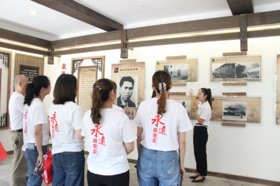 然(ran)後(hou),在(zai)黨(dang)支(zhi)部(bu)書(shu)記(ji)馬(ma)丹(dan)紅(hong)的(de)帶(dai)領(ling)下(xia),全(quan)體(ti)黨(dang)員(yuan)來(lai)到(dao)紅(hong)獅(shi)鎮(zhen)彭(peng)詠(yong)梧(wu)紀(ji)念(nian)館(guan),拾(shi)階(jie)而(er)上(shang),斑(ban)駁(bo)的(de)石(shi)梯(ti)子(zi),古(gu)樸(pu)的(de)小(xiao)木(mu)樓(lou),蒼(cang)勁(jin)的(de)柏(bai)樹(shu),巍(wei)然(ran)挺(ting)立(li)的(de)雕(diao)塑(su),都(dou)和(he)彭(peng)詠(yong)梧(wu)先(xian)生(sheng)大(da)義(yi)凜(lin)然(ran)的(de)革(ge)命(ming)精(jing)神(shen)交(jiao)相(xiang)輝(hui)映(ying)。一(yi)件(jian)件(jian)珍(zhen)貴(gui)的(de)展(zhan)品(pin),一(yi)幀(zhen)幀(zhen)塵(chen)封(feng)的(de)照(zhao)片(pian),還(hai)有(you)解(jie)說(shuo)員(yuan)精(jing)彩(cai)的(de)介(jie)紹(shao),都(dou)給(gei)全(quan)體(ti)黨(dang)員(yuan)留(liu)下(xia)深(shen)刻(ke)印(yin)象(xiang)和(he)初(chu)心(xin)教(jiao)育(yu)。全(quan)體(ti)黨(dang)員(yuan)還(hai)在(zai)紀(ji)念(nian)館(guan)唱(chang)響(xiang)紅(hong)歌(ge)——“沒有共產黨就沒有新中國”,用嘹亮歌聲熱情謳歌偉大的黨,致敬催人奮進的新時代。