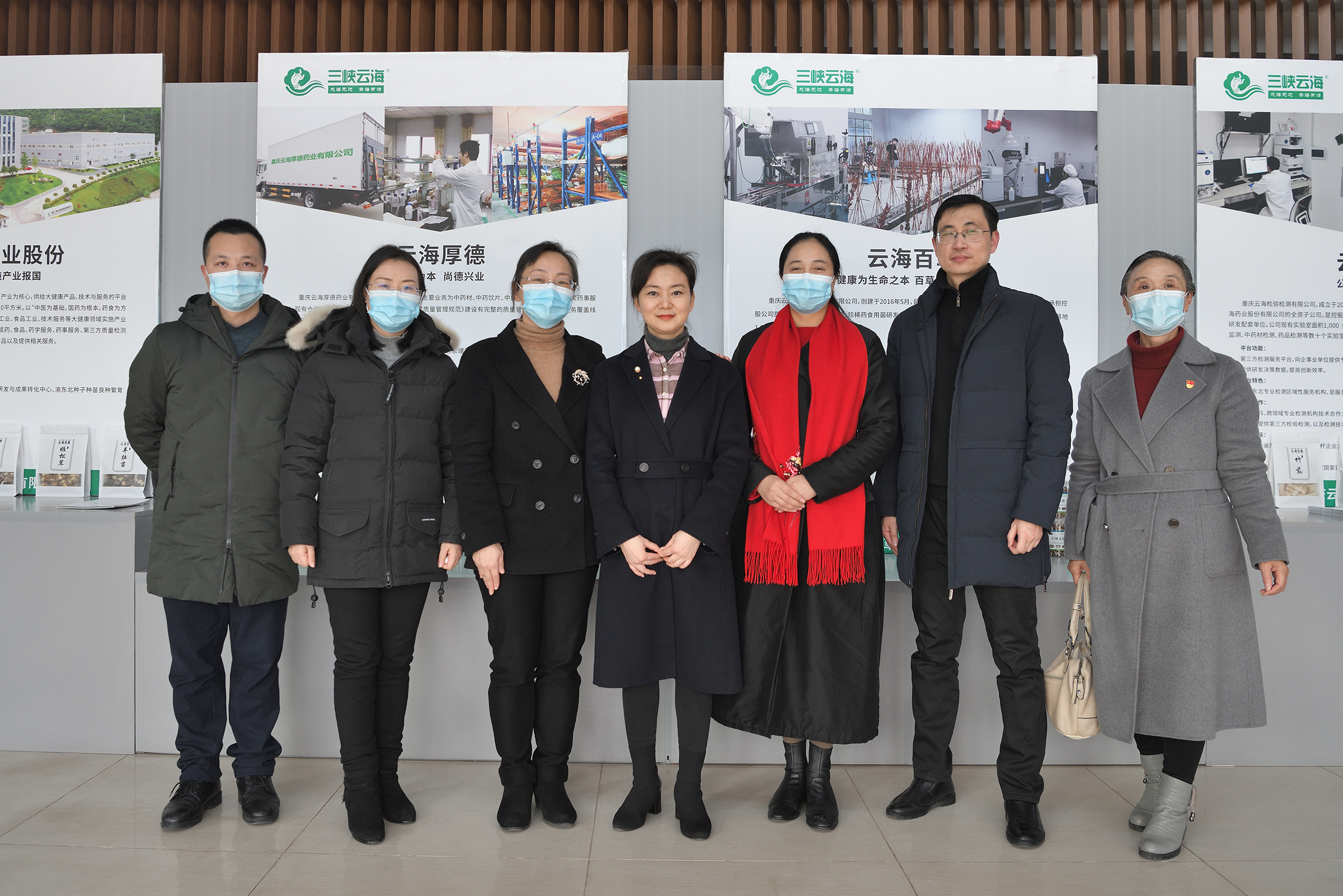 在參觀公司綜合展廳時,李雪妹向孫副主席一行介紹了公司發展曆程。在鄒隆瓊帶領下,經過近20年的發展,將瀕臨破產的國有企業打造成為雲陽縣最大工業企業,從單一的中成藥製造業延伸至中藥農業、中藥工業、中藥商業以及大健康產品、檢驗檢測和科研創新領域的多元化、綜合性企業。連續15年成為雲陽縣十大納稅大戶,2015-2021年累計入庫稅費近2億元。發展成為高新技術企業,重慶市著名中成藥生產企業。曾榮獲全國醫藥行業最具成長力企業、最具科技創新力中藥企業、全國巾幗建功先進集體、全國“萬企幫萬村”精準扶貧行動先進民營企業、農業產業化國家重點龍頭企業等眾多榮譽。